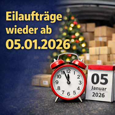 Zum Jahreswechsel sind Eilaufträge vorübergehend pausiert. Eilaufträge werden in den regulären Bestellablauf übernommen.